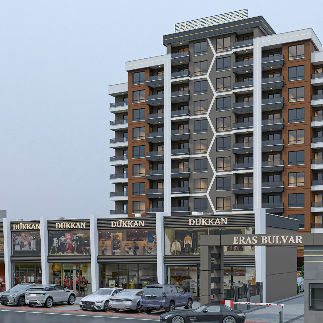 Modern şehir yaşamının konfor ve sosyal olanaklarla buluştuğu ERAS BULVAR, 4.000 m² arsa üzerinde yükselen, fonksiyonel ve prestijli bir yaşam projesidir. 86 daire ve 6 kurumsal ticari alanıyla, yalnız yaşayanlardan çekirdek ailelere kadar geniş bir kitleye hitap eder.